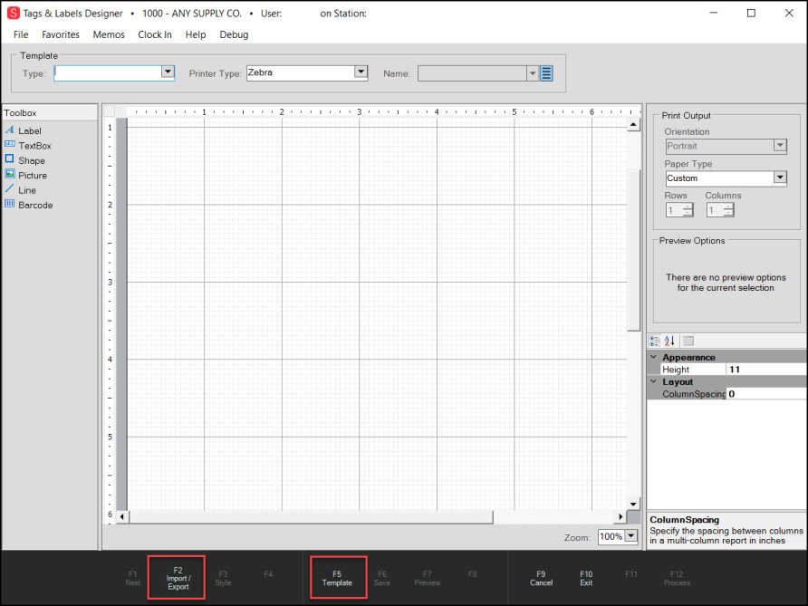 Tags & Labels with Template and Import/Export Function Keys Highlighted