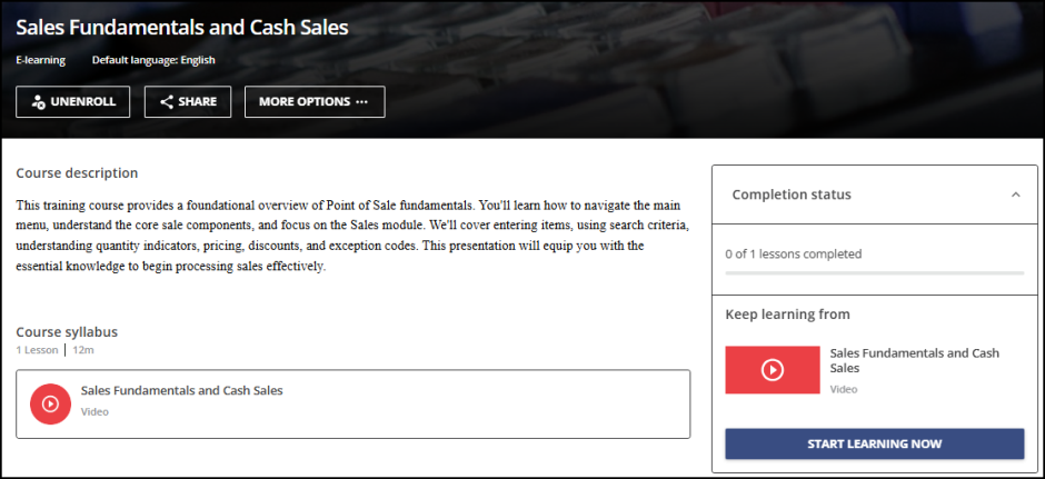 3. Click a video in the list to read the course description. Here, you can also see related training videos and the average completion time for the course.