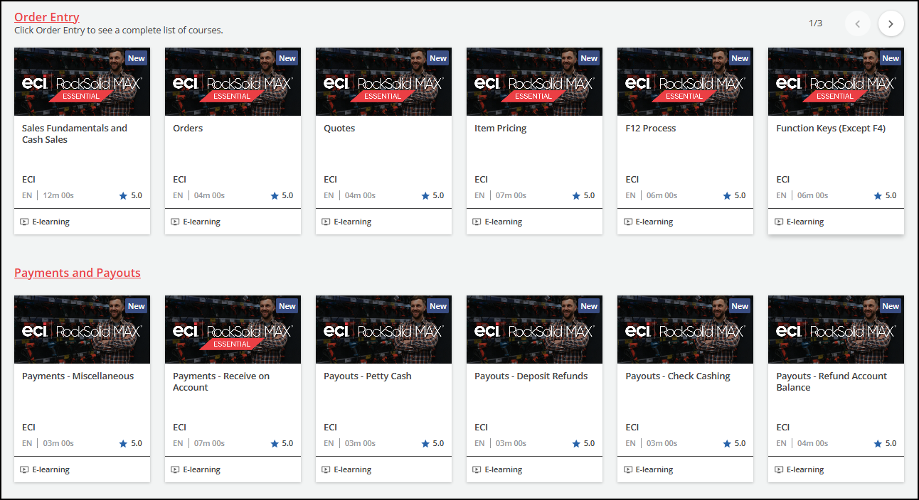Use the eLearning Catalogs pane to sign up for pre-recorded training videos that teach you to use major features in the application. As you complete these lessons, the My Training pane keeps track of your progress.