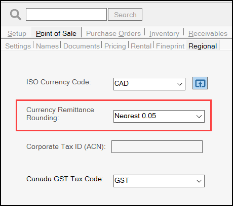 Parameters > Point of Sale > Regional > Currency Remittance Rounding Option