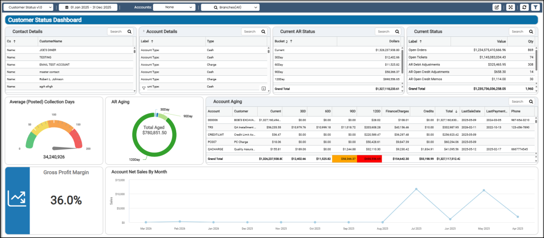 Data is linked directly to transactions, payment data, and inventory costs. Predefined charts and queries help you easily understand business trends, but you can also build your own dashboards to investigate the data further.