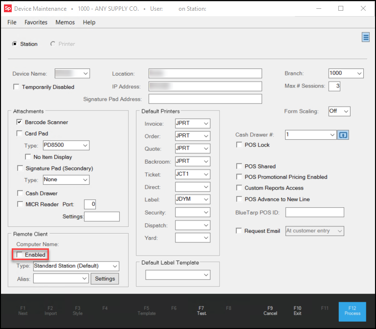 Device Maintenance form with Remote Client Enabled Check Box Highlighted