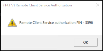 8. In the Remote Client section, select the Enabled check box and click Process (F12). The Remote Client Service Authorization PIN displays.