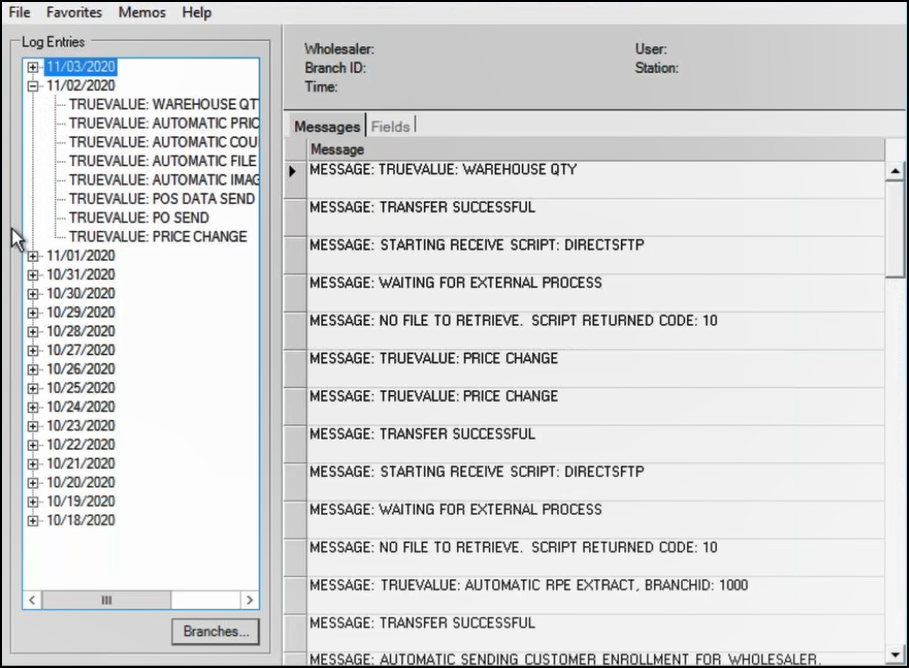 1. From the Main Menu, choose Purchasing > Inquiry > EDI Log. The EDI Log Inquiry form displays. The date fields display the current date by default.